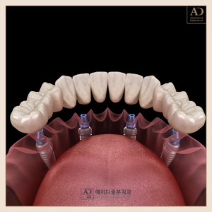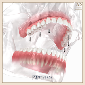 잇몸뼈에 식립한 임플란트를 기둥으로 삼아